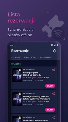 Kupowanie biletów potrafi być uciążliwe, ale nie w aplikacji Biletyna. Wystarczy kilka kliknięć, aby zapłacić za bilet poprzez BLIK-a, kartę kredytową lub szybkie płatności internetowe. Wszystkie rezerwacje wraz z biletami znajdziesz na czytelnej liście, skąd łatwo nimi zarządzać i kontrolować ich status. Z naszą aplikacją w prosty sposób wybierzesz wydarzenie, które Cię interesuje, a także dokładne miejsce dla siebie i swoich bliskich. Każde z miejsc (teatr, kino, stadion itp.) zostało dobrze przedstawione na planie sali, dzięki czemu nie ma trudności z zakupem miejsca w najodpowiedniejszej dla Ciebie lokalizacji.