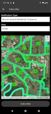 With the Brownsville Mosquito Notices app, you can place requests for mosquito control service, as well as subscribe to receive notifications of adult and larval treatment activities in your area. You can choose to be alerted of activity throughout the City or for specific notification zones only.