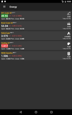 - Interactive Charts in portrait and landscape mode with zoom, range from: last 24 hours, 7 days, 6 months, 5 years and 10 years. - Main commodities, including energy, metals, grains, livestock, and softs. * Crude Oil (Oil prices) * WTI * Brent * Natural Gas * Gold * Silver