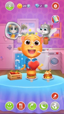 🍜🍽️ Prepare delicious meals for your virtual talking cat. Just open his fridge and choose yummy snacks you can give to your hungry virtual talking pet. 🍕🍏 But be aware, if your virtual cat eats too many sweets 🍫🍰, you have to take him to the dentist. 👨⚕️